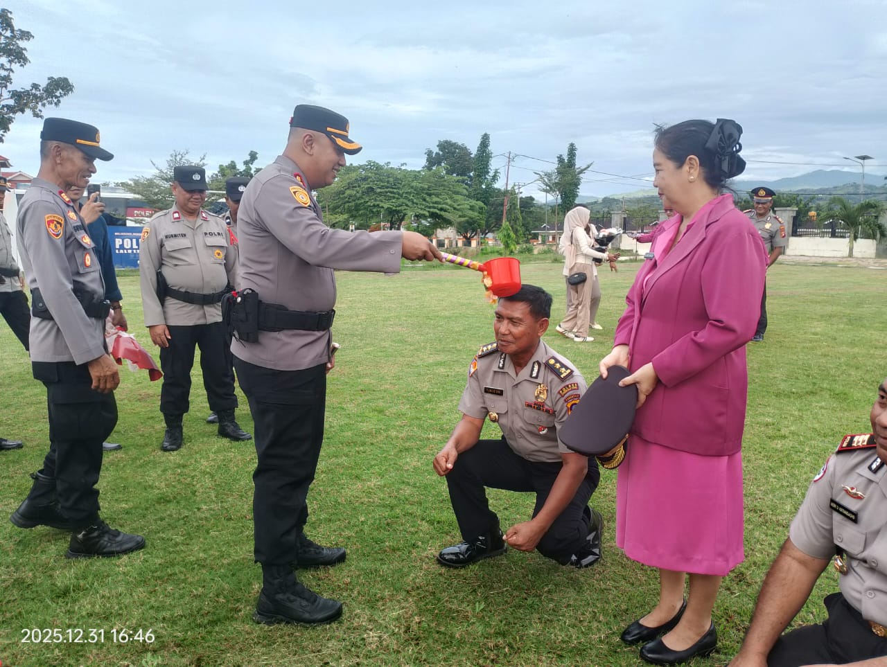 Kapolres Gorut AKBP Ahmad Eka Perkasa mengungkapkan, setelah mengikuti upacara kenaikan pangkat, 43 personel tersebut selanjutnya mengikuti tradisi penyiraman air bunga.
